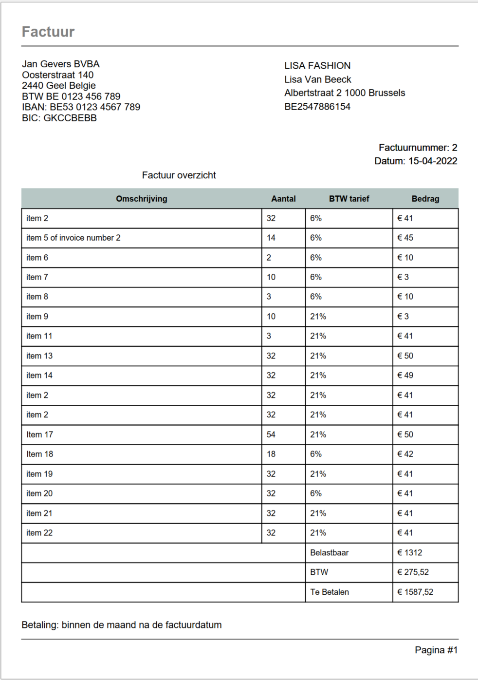 - Mogelijkheid om facturen en pdf-bestanden te genereren.